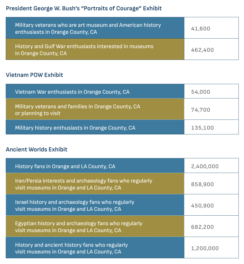 Our goal was to increase online ticket sales through exhibit-specific landing pages built for conversions and the main website ticket page. To start, we worked closely with The Richard Nixon Foundation Library team to develop specific target audiences, using our proprietary data to build custom universes of potential visitors who would be interested in unique exhibits like the 2023 Vietnam POW exhibit, 2024 George Bush Art exhibit, the most recent Ancient Worlds exhibit, and world history. We then crafted a digital advertising campaign to reach those people on the right devices at the right time with the right message to encourage them to click through to the landing pages and on to purchase exhibit tickets.